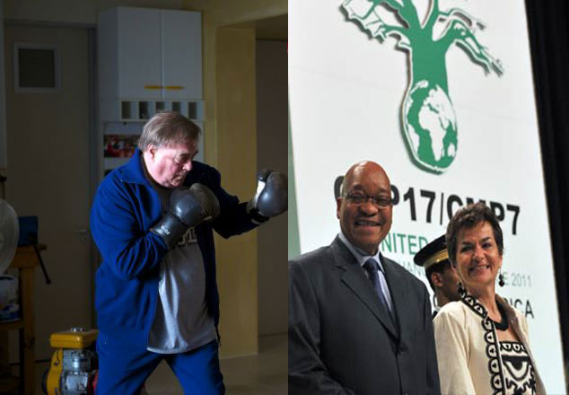 Left: Lord Prescott (Daily Mail UK). Right: President Jacob Zuma and UN climate chief Christiana Figueres pose for a photograph during the opening of UN talks on climate change in Durban. (Alexander Joe, AFP)